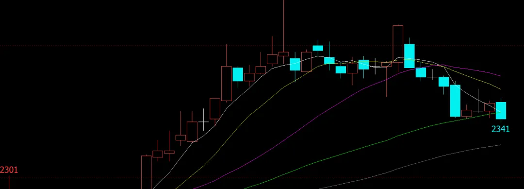 今日总结:等量减仓下跌破均线k线未止跌,技术偏空,下方支撑参考2300-2320,技术面看2300有较强支撑,震荡参考2324-2350,基本面因气温回升农户加快余粮出库,政策性小麦稻谷进入季节性