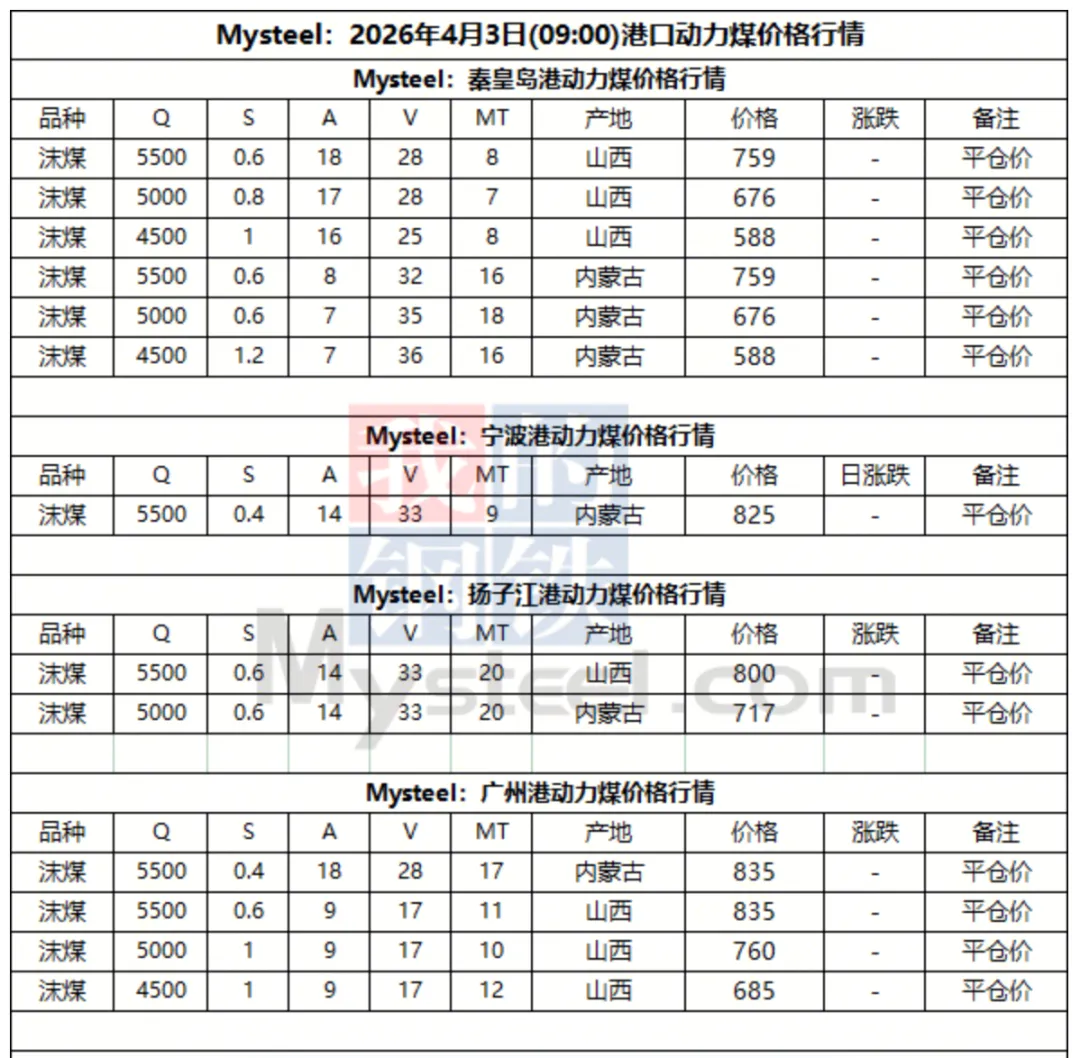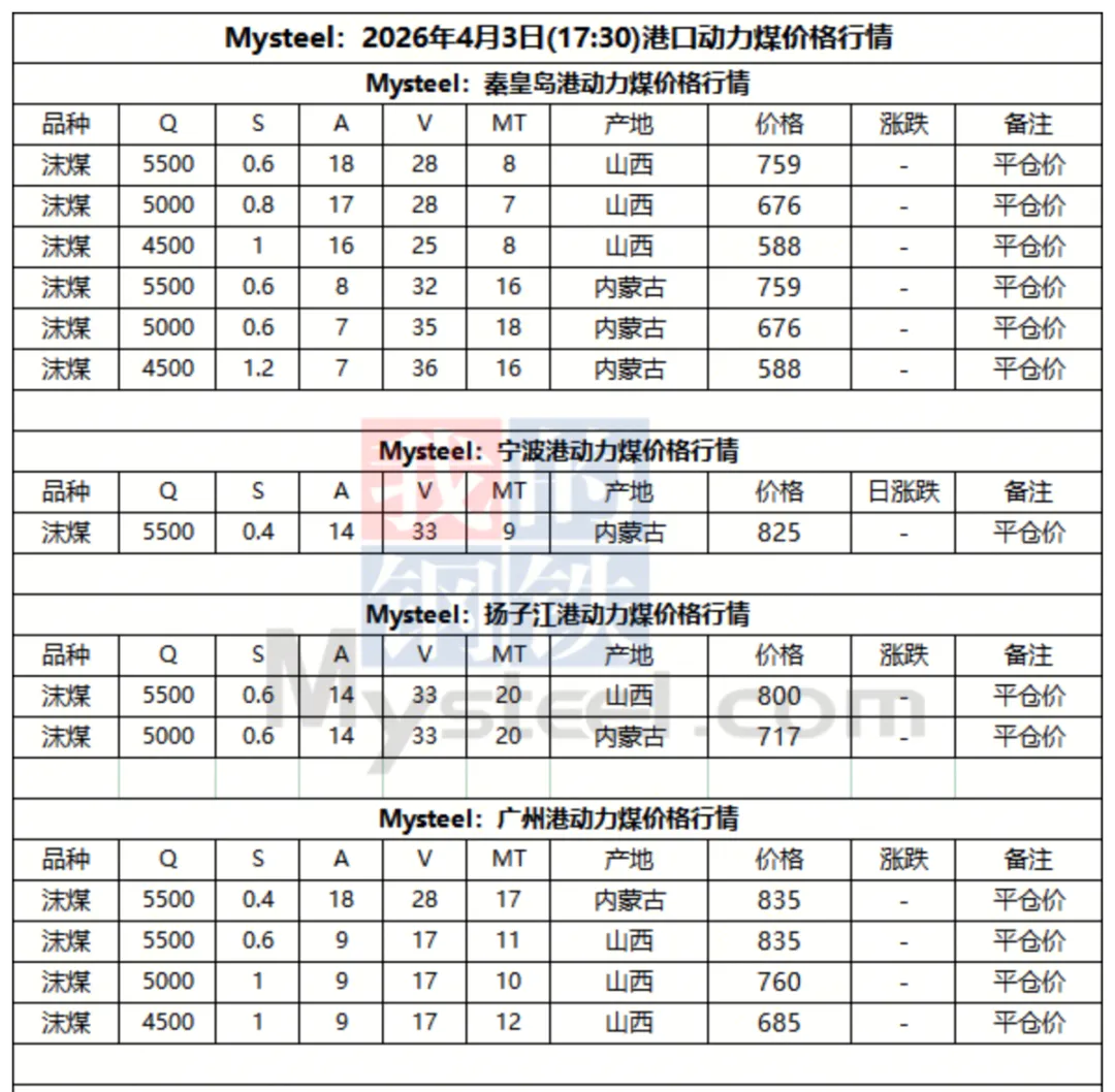 3日港口动力煤报价弱稳运行。昨日市场报价表现僵持,部分产地价格在下跌调整后多以观望为主,个别煤矿小幅探涨,叠加大秦线检修及港口库存陆续小幅去化预期,部分贸易商对后市看法偏乐观,但下游实际需求表现疲软,询货问价冷清,市场观望情绪浓厚,多以谨慎操作为主,实际成交较少。后市需持续关注港口去库速度及市场实际成交情况。