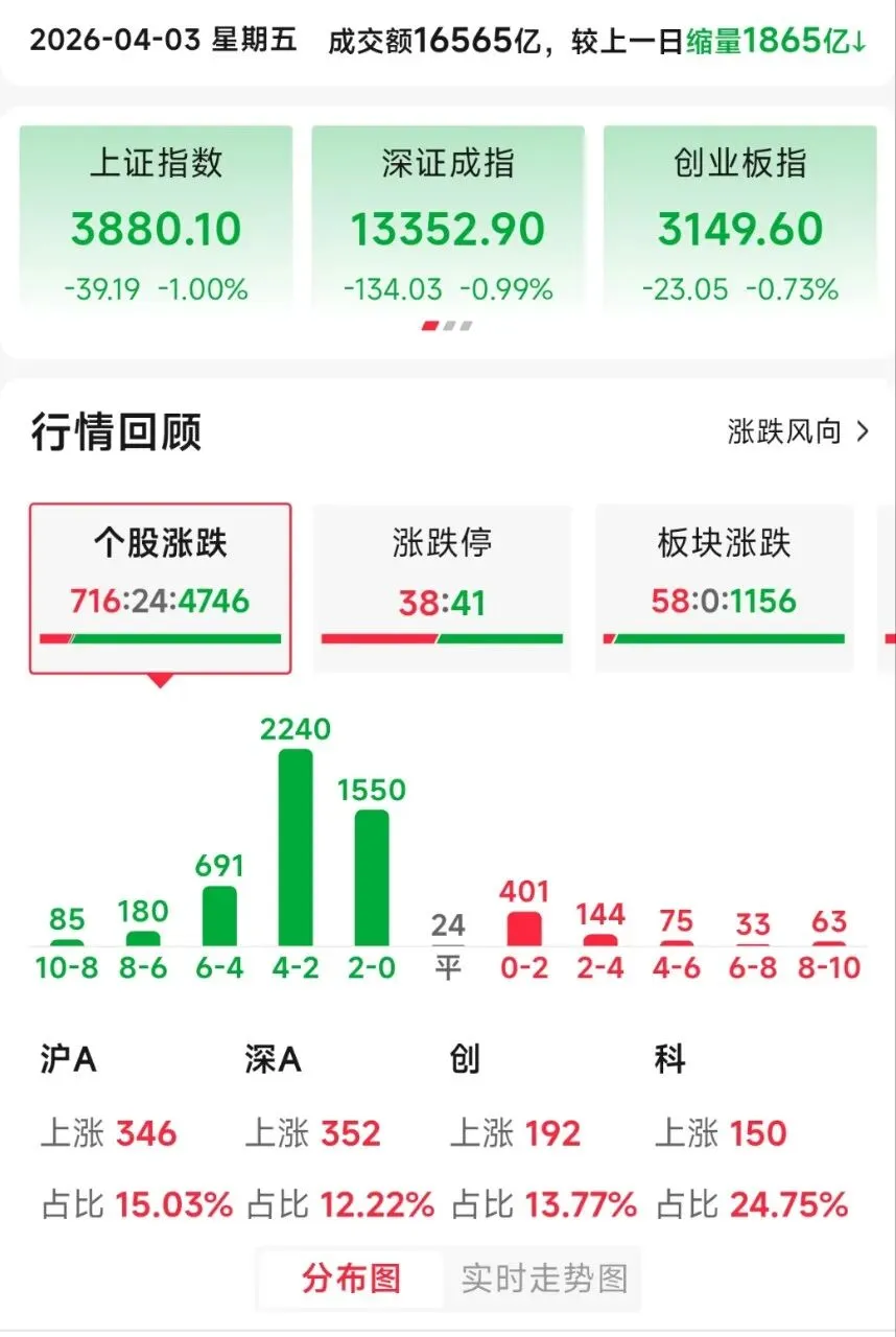 今日市场全天震荡调整,行情走势跌宕起伏,三大指数集体高开低走,沪指再度跌破3900点关键关口,市场氛围略显低迷。大小指数分化显著,中小盘股表现疲软,微盘股指数跌幅超3.5%,全市场超4700只个股下跌,投资者情绪受到一定影响。沪深两市成交额1.66万亿,较上一交易日缩量1865亿。