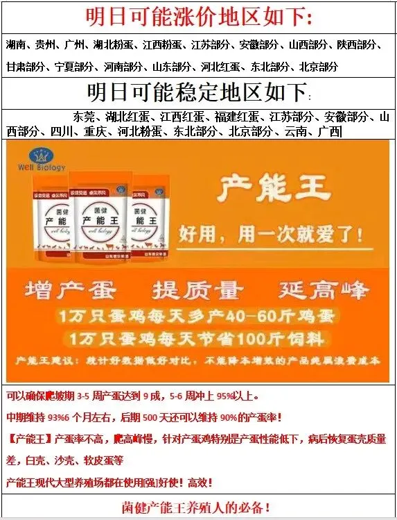 从明日各重点区域行情预判来看,核心销区北京以及主产区山东、河南,均迎来涨价行情,其中北京作为核心消费市场,需求支撑力度较强,价格上涨预期明确;山东、河南作为全国鸡蛋供应核心区域,价格上调也将带动周边市场行情走高,形成区域性涨价联动效应。河北粉蛋今日价格维持稳定,当前市场货源流通顺畅,库存处于合理区间,加之市场看涨情绪渐浓,后续仍有充足的涨价空间,养殖户无需急于低价出货。