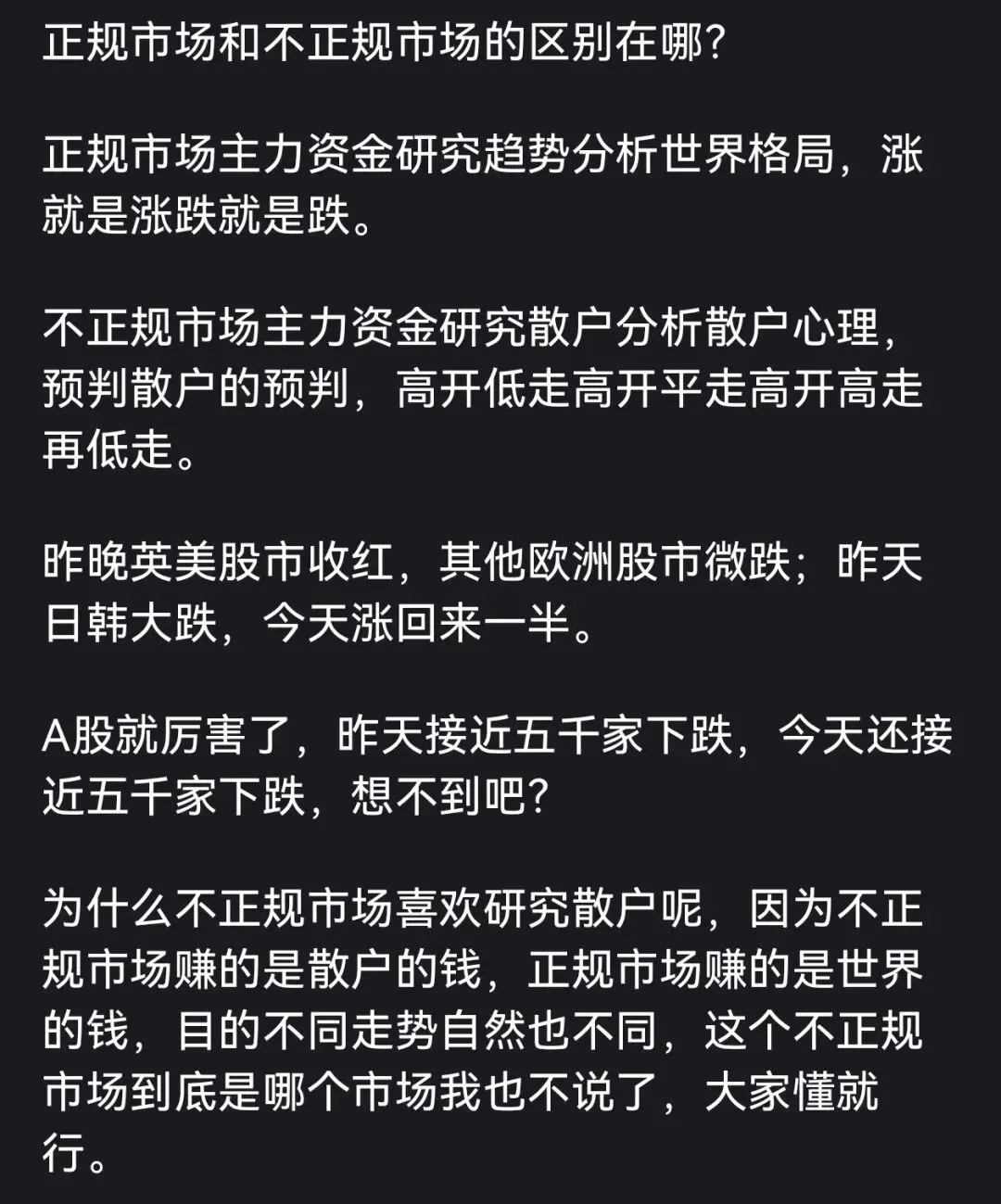 今天有网友指出了正规市场和不正规市场的区别,大家好好看看吧。