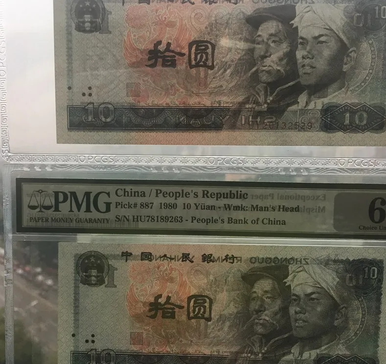 第三张是个小细节,俩同批次的PMG评级封装纸币摆在一起,可以看到编号、标签都一丝不苟,这种“封板币”收藏圈子默认就是“证书”,你要出手,买家也是对着PMG的分数拍的价,EPQ标签其实意味着这张币从来没被拆过、没被改动过,有的行家专挑这种认证票,图个放心。