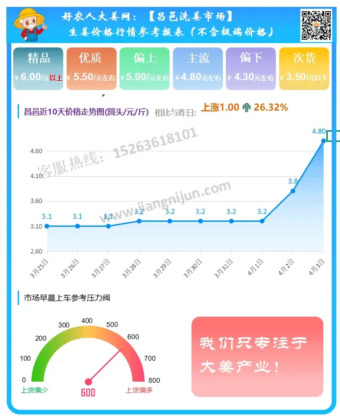 [04/04]大姜价格行情(破六了!清明佳节到!大姜呼呼涨!)