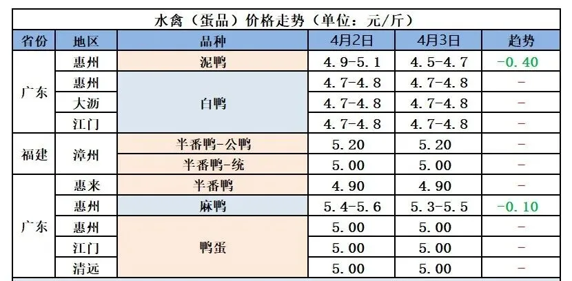 2026年4月4日全国鲜鸭蛋价格