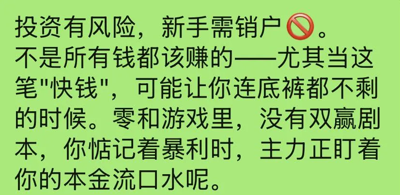 衷心希望朋友们远离这个市场!你以为是来赚钱的,其实是来交学费的,而且这学费大概率一辈子都赚不回来……