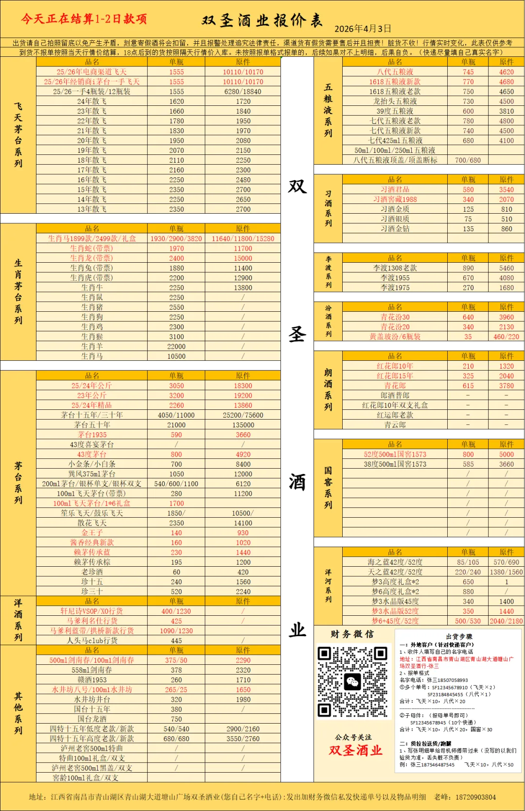 即日起,寄存超过15天的,出货时茅台+5、五粮液+2、飞天原件+15、八代原件+10、国窖+3.需要寄存的直接跟财务说明即可。