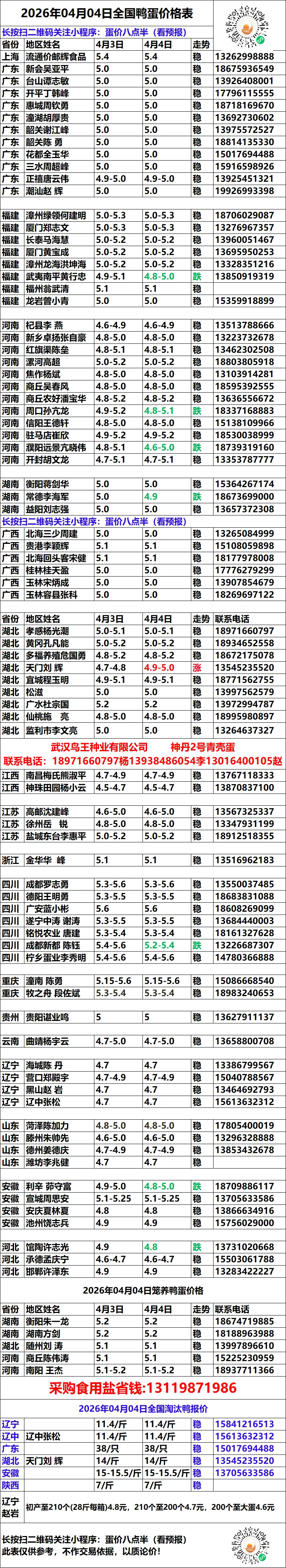 每日早8点更新,助您把握每一枚鸭蛋的行情脉搏!