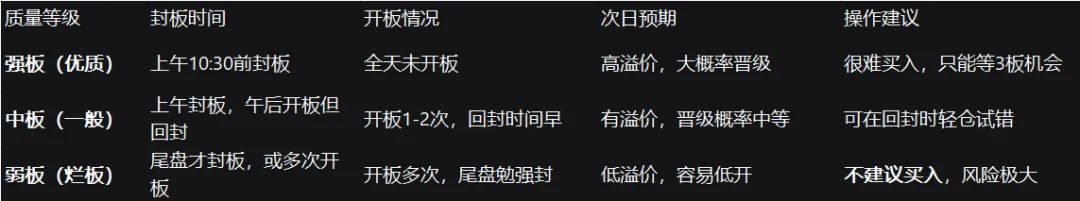 时机:第一个涨停板(首板)后的次日,该股成功封住2板,按以下情况的中板进行买入。(因为强板无法买入,弱板属烂板,不可买入)买点2:3板开盘(竞价或开盘后几分钟)—— 适合追求确定性、较高风偏