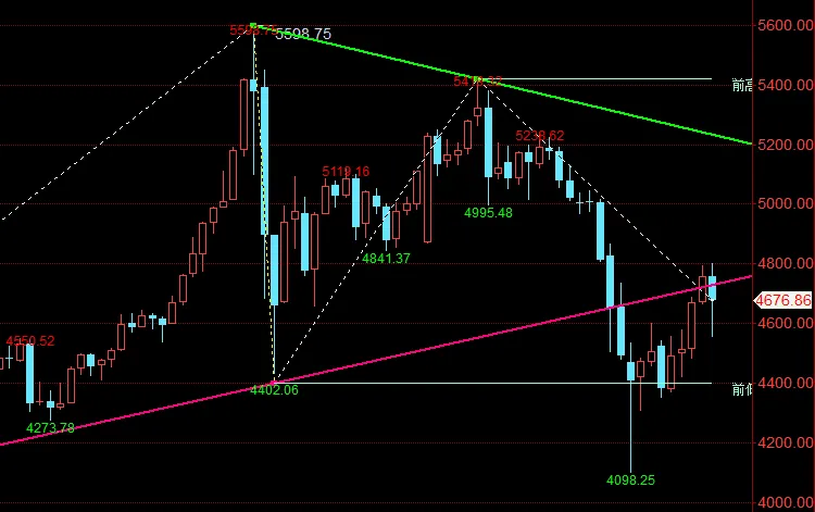 后市操作坚守空头主线,所有反弹均为弱势修正,建议4700-4740区间分批布局空单,止损严格设于4800上方,目标先看4550,破位下看4400,警惕地缘突发扰动,整体顺势做空为核心策略。