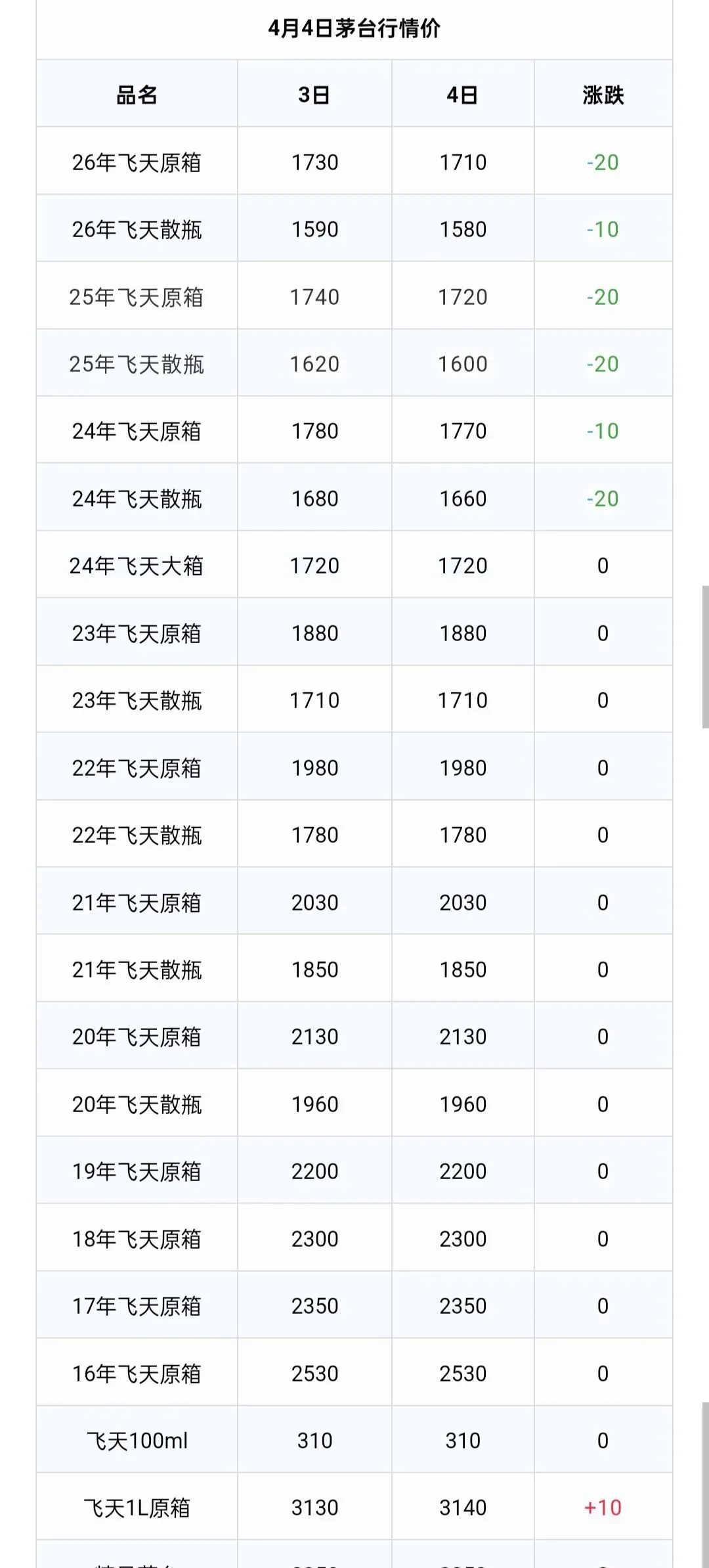 飞天价格下跌!2026年4月4日茅台酒行情价
