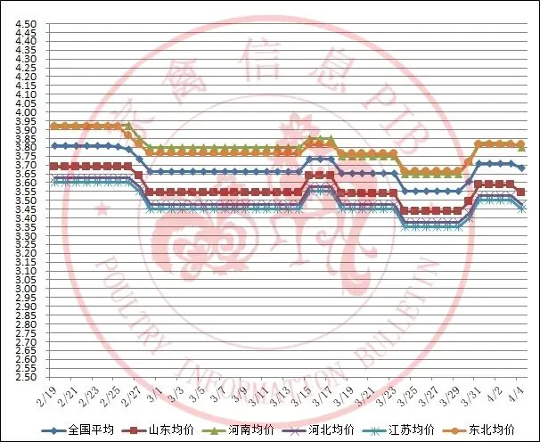 2026年2月19日-2026年4月4日主流地区白羽鸡毛鸡均价走势图