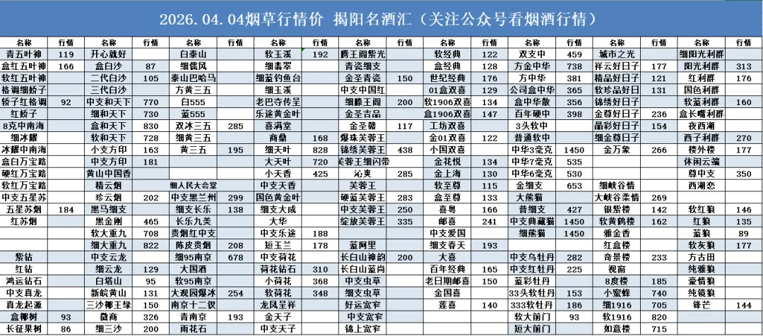 今日行情:2026-04-04