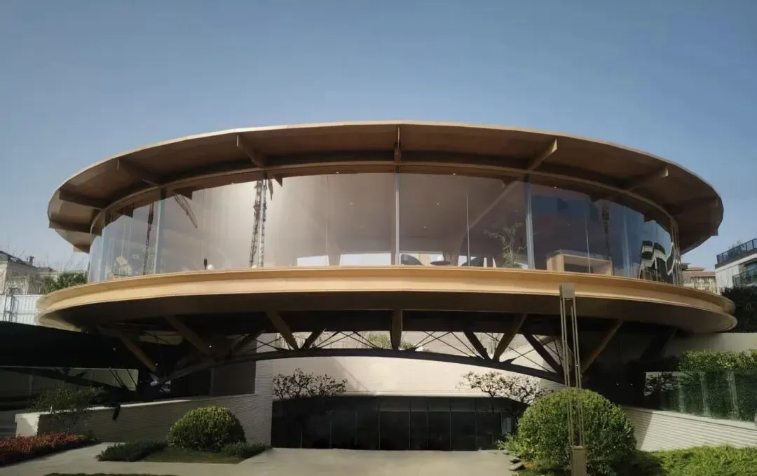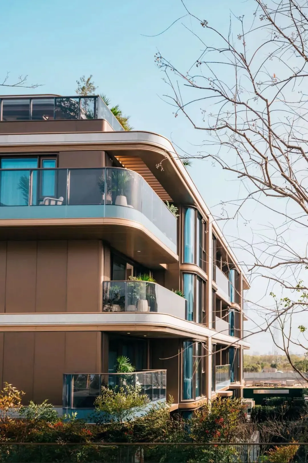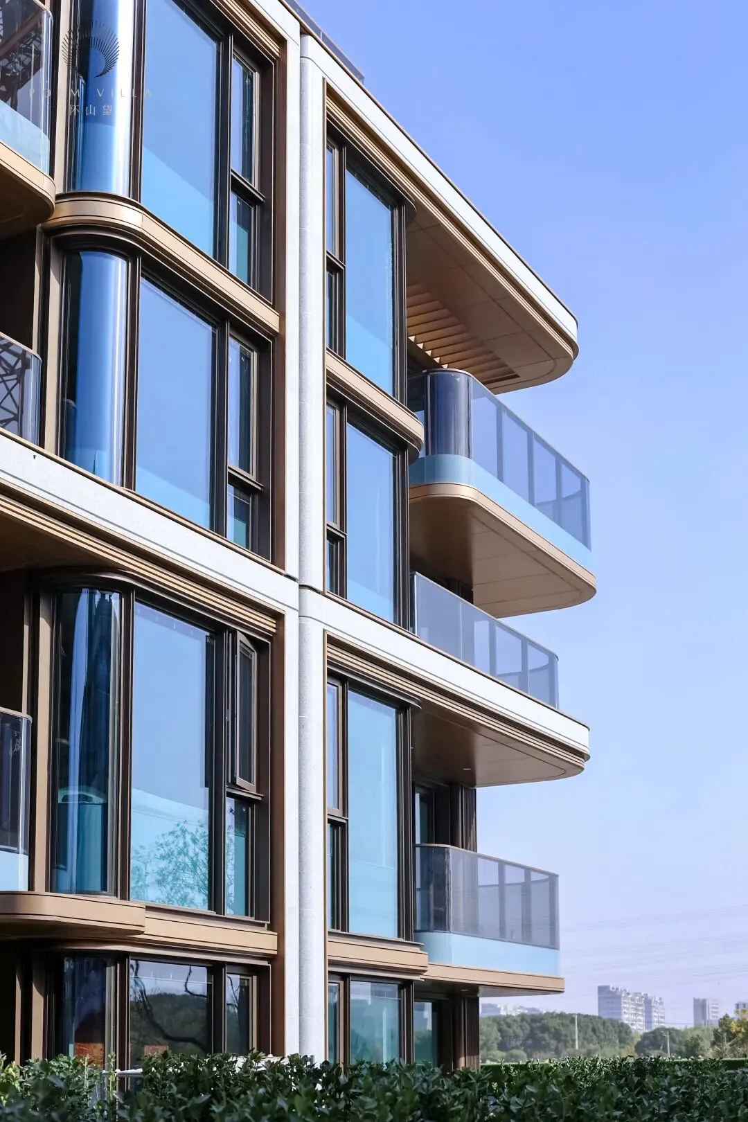 区域最高的「约0.6窗墙比」,实现极致通透且与景观充分交融:其立面一眼看去几乎全是大面积玻璃,将观景效果发挥到极致,并且不同于常见直角设计,大量弧线运用颜值极高。