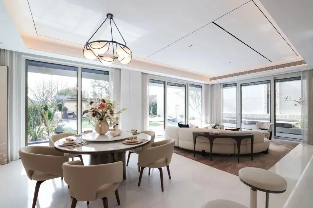 多种生活场景一字排开,家庭聚餐、圈层社交都能够游刃有余,赋予墅居产品大平层的采光和视野。