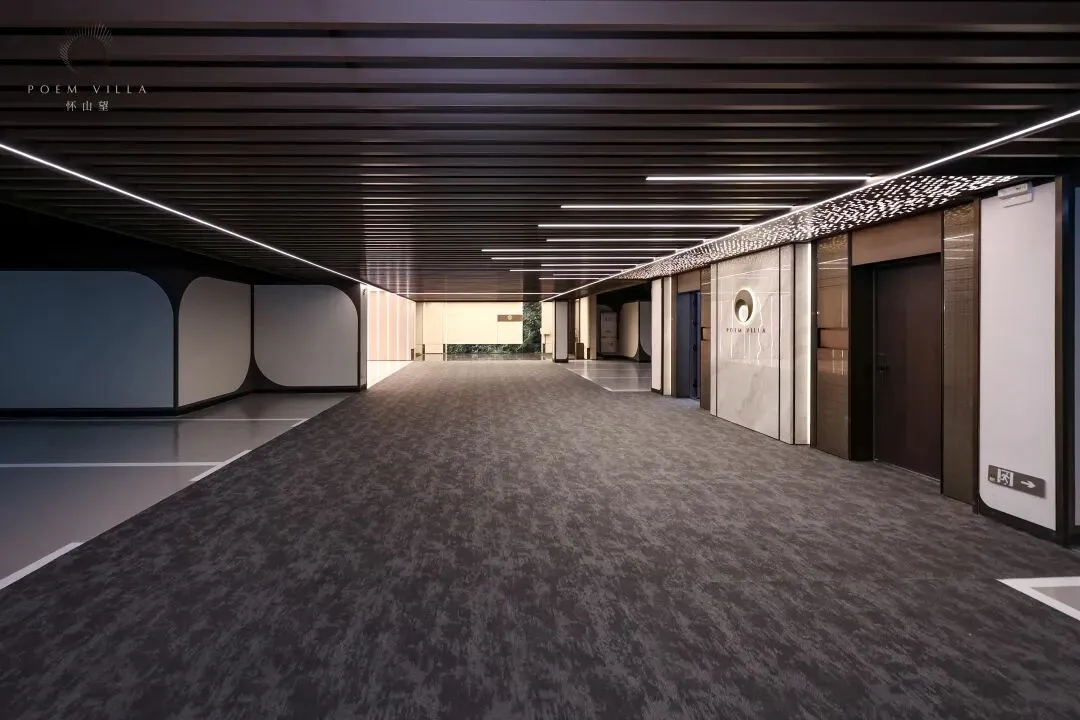 甚至连地下也对标市区顶豪,升级为「星空顶地库」,地面定制环氧地坪、顶部不锈钢镂空星空,还有顶奢酒店的环岛车马厅,车位比更是高达1:2.1,满足别墅业主尊崇感需求。