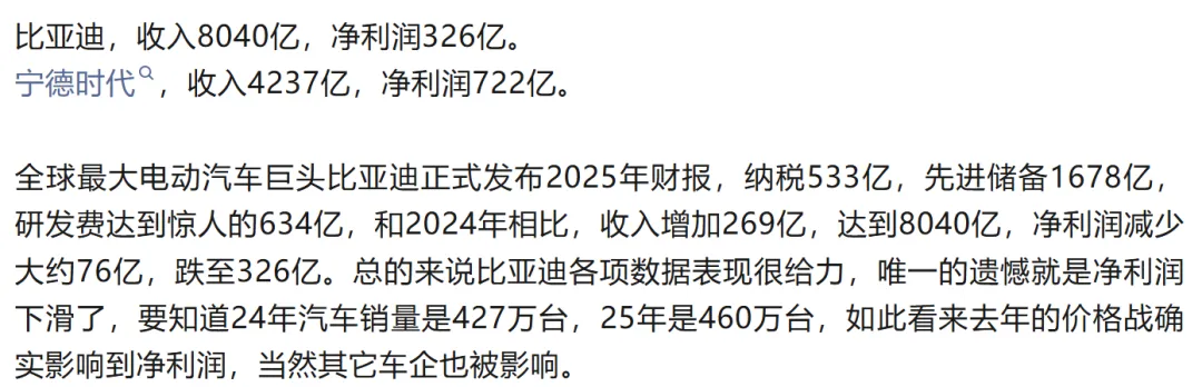 4,比亚迪和宁德时代公布了2025年财报