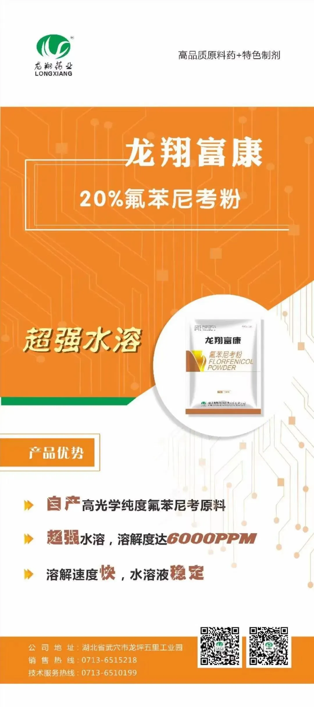 龙翔富康采用先进包合工艺,选用进口高品质包合材料,使得氟苯尼考超强水溶,体内有效浓度高,抗菌性更强。1、超强水溶性:采用分子包合工艺,实现氟苯尼考的超强水溶,溶解度高达6000ppm以上。2、水溶性稳定:药物分子与载体分子结合稳定,不受温度、时间、湿度等因素影响;其水溶性静置12小时,无降解、无沉淀产生。3、制剂杂质低:先进的工艺过程,减少药物在生产过程中杂质产生,提高药效、安全性,减少药物在体内副作用,保障食用动物安全。
