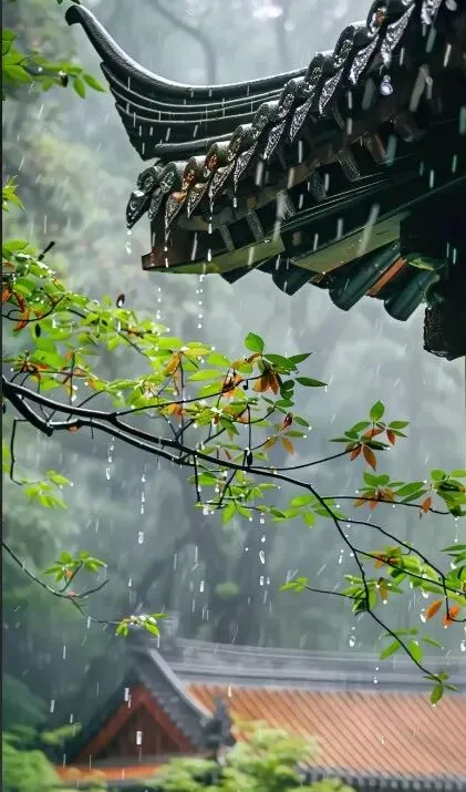 我透过这光隙看去,密密麻麻的水滴缀在枝头,好似等待着这场生命的盛宴。