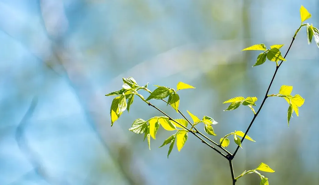 新绿悄悄染枝头。