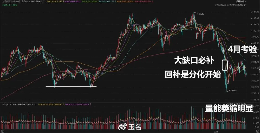 点位方面,4月已经回补了3.23日缺口,按照之前分析,月初往往都是开门红和修复的,修复的目标就是美伊冲突影响的平缓,以及技术缺口的回补。但这并不意味着直接转为多头趋势,这里回补就完成群体风险下跌后的修复,新一波分化就此开始了,从4月角度,再度考验3800点支撑,甚至2-3次,然后选择方向,这还是大概率的。这种走势也是前期分析过的,2026年初十几连阳未必是好事,唯一可以类比的只有2018年,所以做好困难准备,很可能是构筑平台,然后逐步调整,热点间歇活跃的情况。