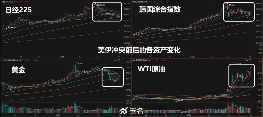 外部因素方面,近期还是一个特朗普TACO的时间,大家也看到了规律,一到周四、周五搞事情,到了周一又给拉回来,连续几周了。实际上,这一次4.2日又是类似的,特朗普一改之前谈判的意思,又开始了说要打,“接下来几周将对伊朗进行更强火力打击。一旦无法达成协议,美国将对伊朗所有的发电厂实施猛烈打击。”这一情况直接让韩国股市从前一天的上涨熔断到下跌熔断,蹦极走势也是近期频繁呈现,毕竟日韩对外能源依赖度很高,所以受美伊冲突影响也很大。