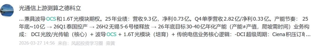 26.3.20 OCS落地加速,德科立/腾景/炬光等受益逻辑从预期变为订单驱动