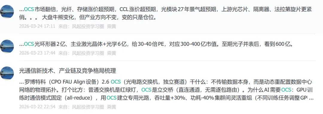 25.12.10指出光通信已经进入主升浪,光模块、OCS、上游器件是三大核心,机会非常多
