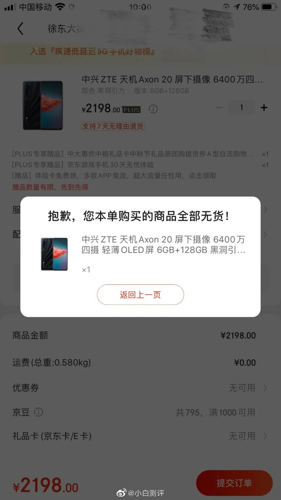 如上图所见,中兴A20上午10点首销小白掐点进结果秒没...小白甚至有点怀疑武汉地区压根没备货几台,以往还有小伙伴私信说买到了