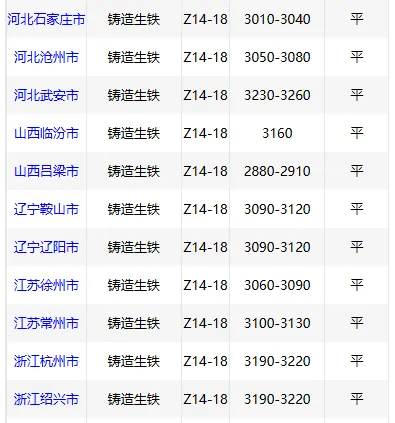 4月1日华北地区铸造 生铁价格稳,Z18武安3230-3260元/吨,临汾3160元/吨。