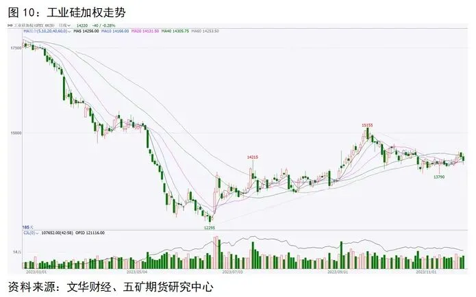 工业硅,受制于库存及现货价格压制,短期盘面可能继续维持震荡甚至偏弱的情况。但往后期看,我们认为西南地区成本将继续提升,且其供应仍有相当大的收窄空间(新疆地区的增产近期有对冲),产能不断投放之下多晶硅需求将维持高位继续支撑工业硅需求等因素将支撑价格在后期仍存在较显著的反弹空间,这些因素也正在逐步兑现中。我们依旧认为价格存在向上1500-2000个点的反弹的机会,价格向上的性价比远高于向下。但仍不建议进行左侧布局交易(盘面也仍未摆脱9月下旬以来的下降趋势),建议继续等待盘面盘整后的右侧反弹机会。
