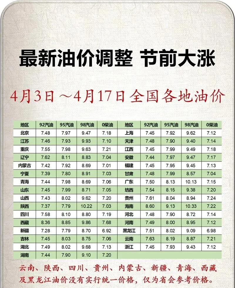 再给大伙儿同步一下眼下的“战况”。截至3月31日下午,全国大部分地区的92号汽油,还坚挺在8块5到8块6一升,好一点的地区8块4,差点的奔着8块7去了。等过了4月7号晚上12点,这均价估计就能滑到8块4左右晃荡,算是暂时把那个让人肉疼的8块5的高位给掀翻了。