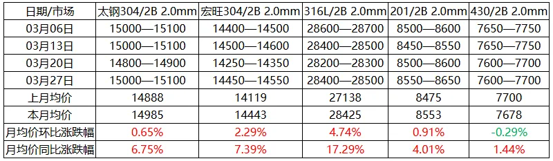 1. 3月不锈钢市场回顾:行情震荡,价格重心有所上移