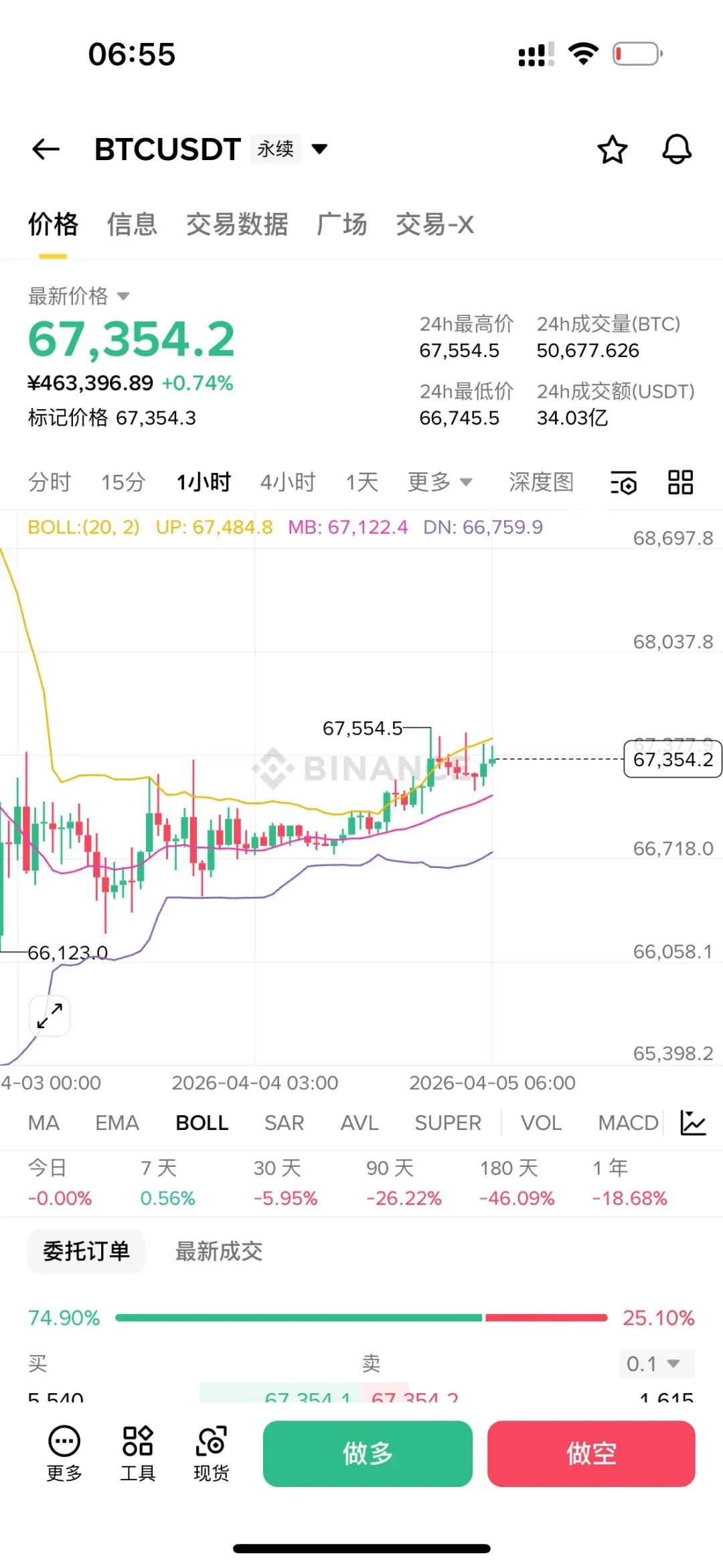 市场从不相信情绪只遵循规律,单笔盈利毫无意义,持续成长才是核心,止损是生存法则。凌晨三点大饼这波拉升,完全是地缘消息的推动。伊朗的强硬表态直接点燃了市场的避险情绪,资金在短时间内快速进场,把价格从67200拉到了67500。但这种消息驱动的行情,持续性往往存疑,后续价格回落,说明追高的资金也在获利了结。短线来看,上方67500是强压力,下方67000是短期支撑,后续局势也没有进一步发酵。操作建议高空进场。大饼:67500空,目标67000以太:2075空,目标2055