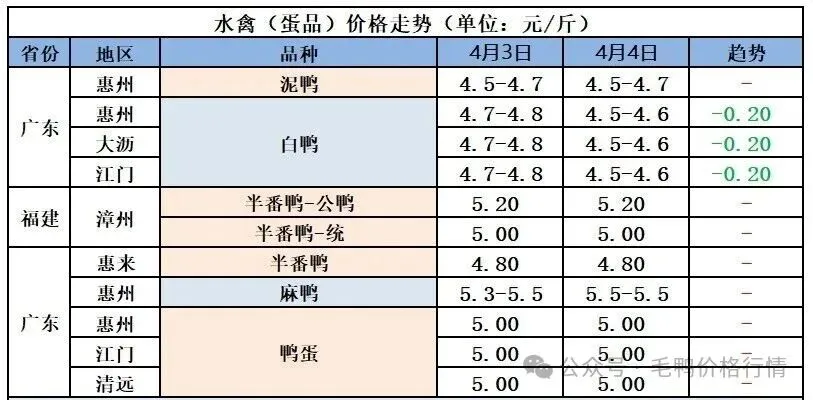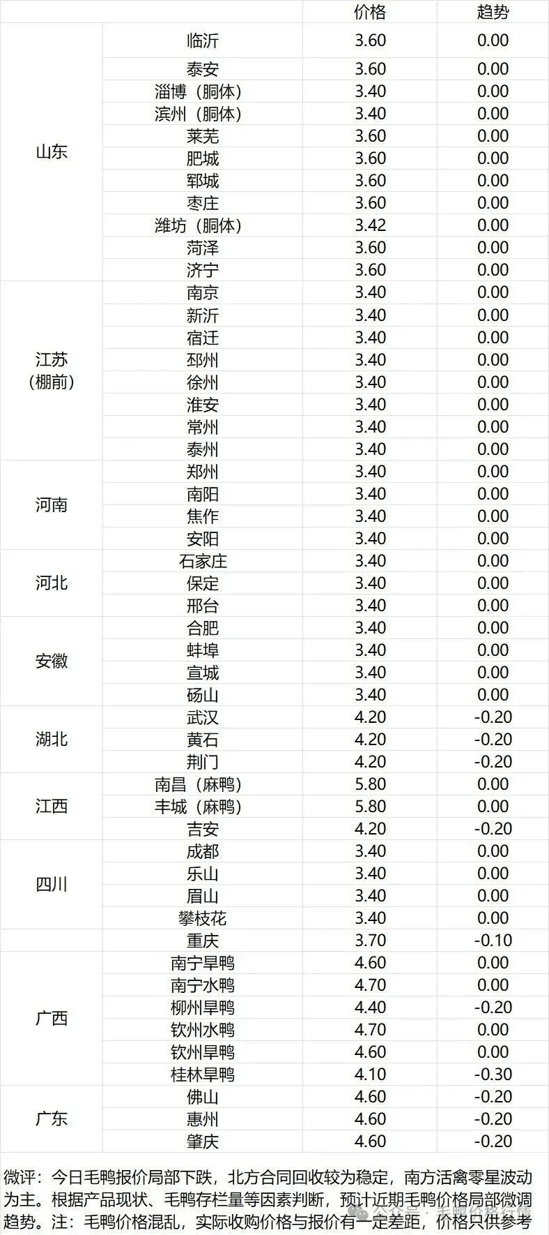 2026年4月5日毛鸭价格行情:(单位:元/斤)