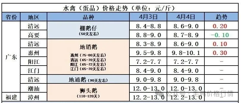 4月4日南方桂柳广东区域毛鸭报价(元/斤) |