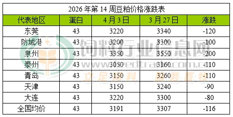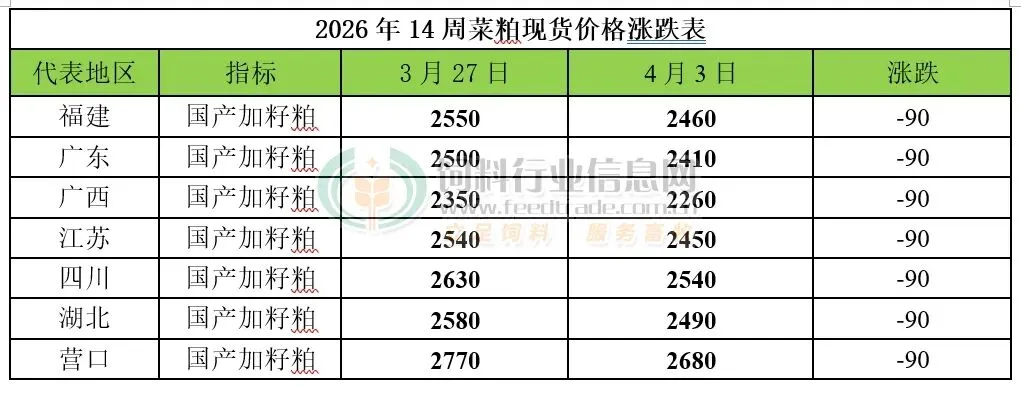 本周菜粕价格跟盘下跌。加拿大油菜籽期货上涨,主要原因是外部植物油市场走强,加元汇率疲软。菜粕现货跟盘震荡下跌,菜粕需求整体不佳,目前水产养殖业仍处于季节性复苏的初期,华南等主产区投苗尚未大规模展开,饲料企业普遍采取低库存策略,而豆粕偏弱,菜粕替代需求有限,仅维持刚性补库。随着我国大幅下调加拿大菜籽产品进口关税,进口菜籽将迎来集中到港,国内菜籽供应得到极大补充。4月以后气温回升,水产养殖料需求有望逐步启动,或者会提振菜粕需求。短期而言,菜粕继续震荡偏弱调整。本周五沿海地区普通菜粕价格下跌90元/吨。