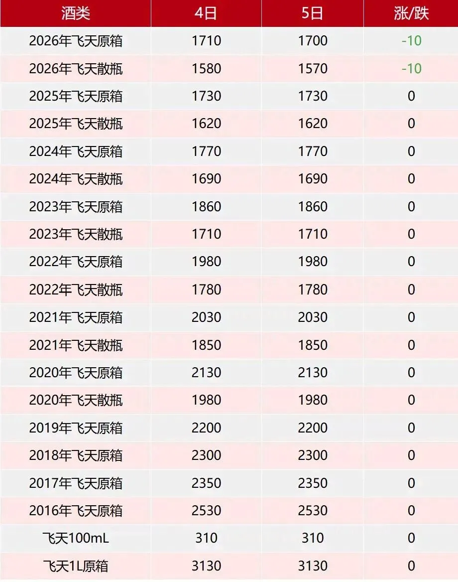 茅台行情价丨2026年4月5日|飞天茅台1560