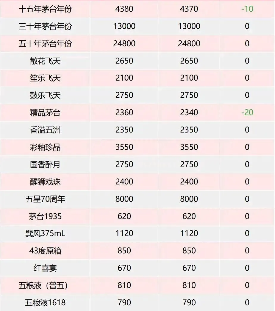 飞天茅台全线下跌,4月5日茅台酒行情价!
