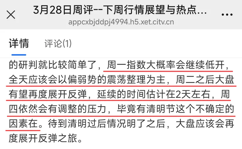 这个周末中东的嘴炮依然打得很响,特朗普又给伊朗下48小时最后通牒了,也就是截至到4月6日,而7号我们A股开盘。伊朗则一边警告将摧毁美以在中东所有资产一边在拼命地寻找被击落的美国飞行员。现在大家主要关心几个问题:1,节后大盘还会不会继续跌?2,反弹是否已经结束了?3,如果反弹还没结束,什么时候会继续反弹,高度是多少?那么今天的周评我们就围绕上述几个问题来讨论一下接下来大盘的走势演变以及操作上的一些策略,需要了解的朋友请点击左下角的“阅读原文”来查看分享内容。