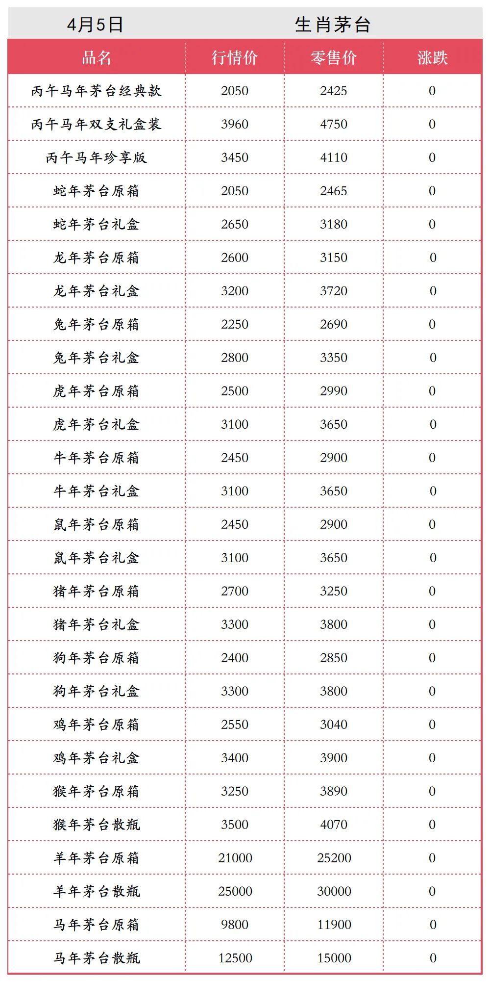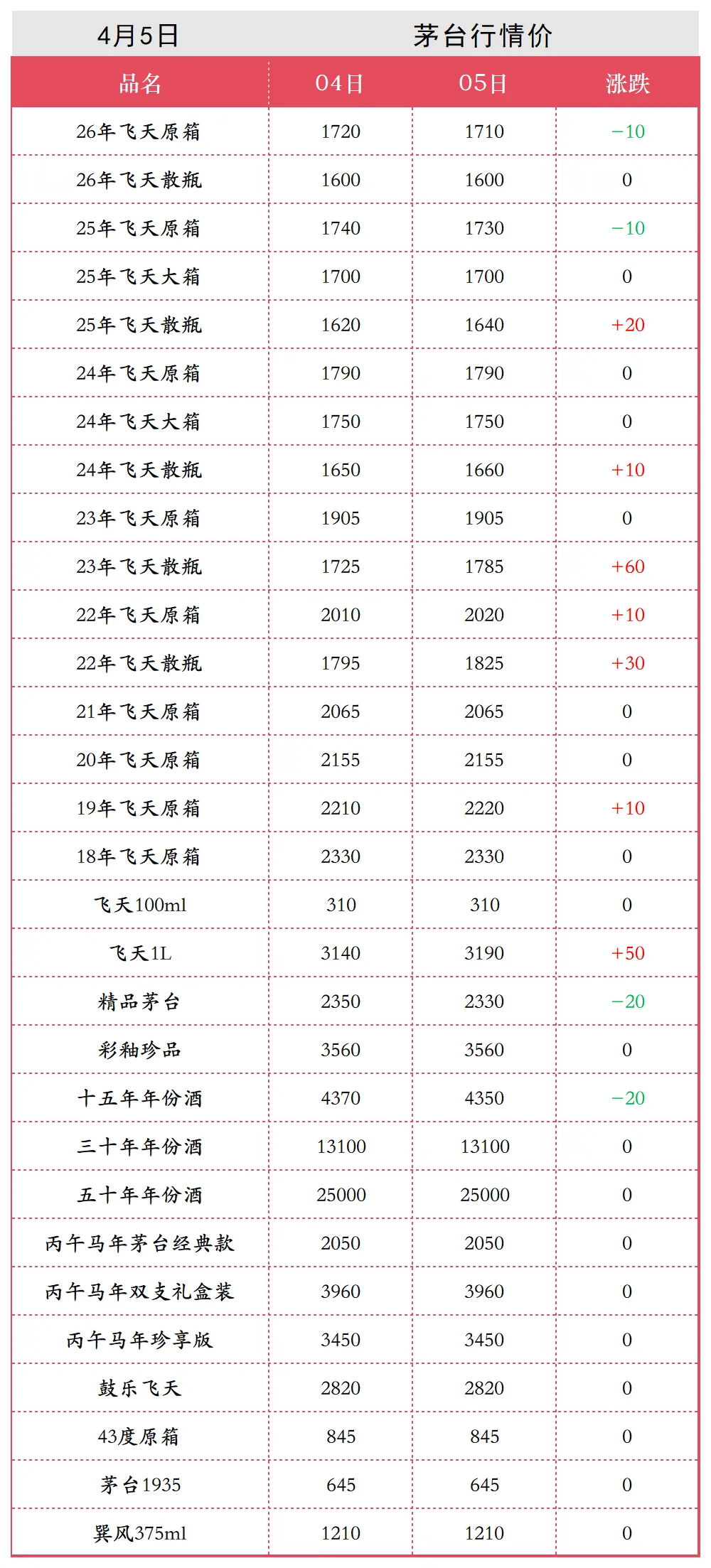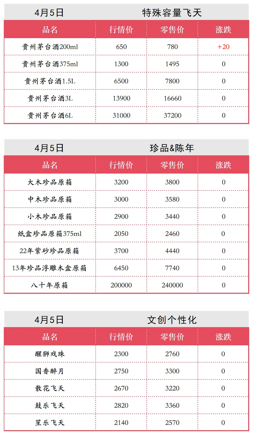 4月5日各类茅台批发行情价