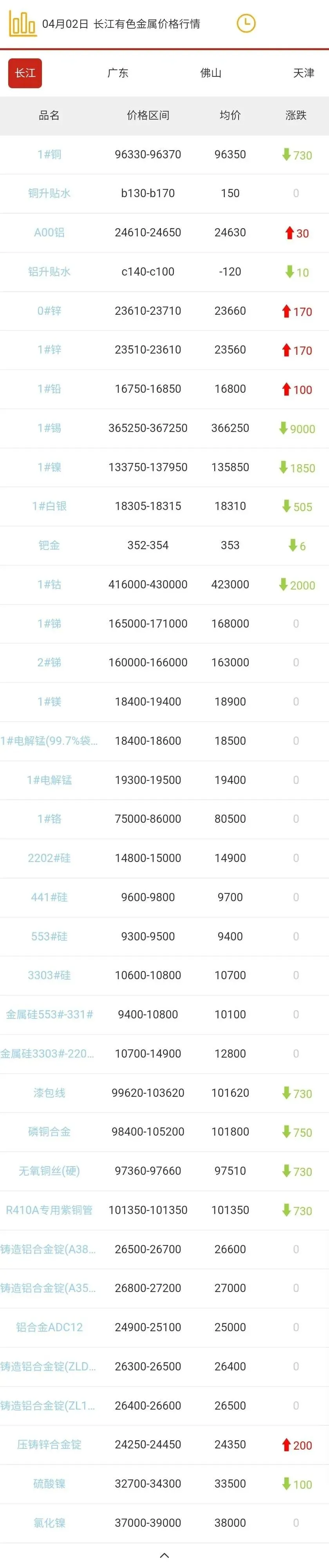 >2026年04月02日有色金属现货行情