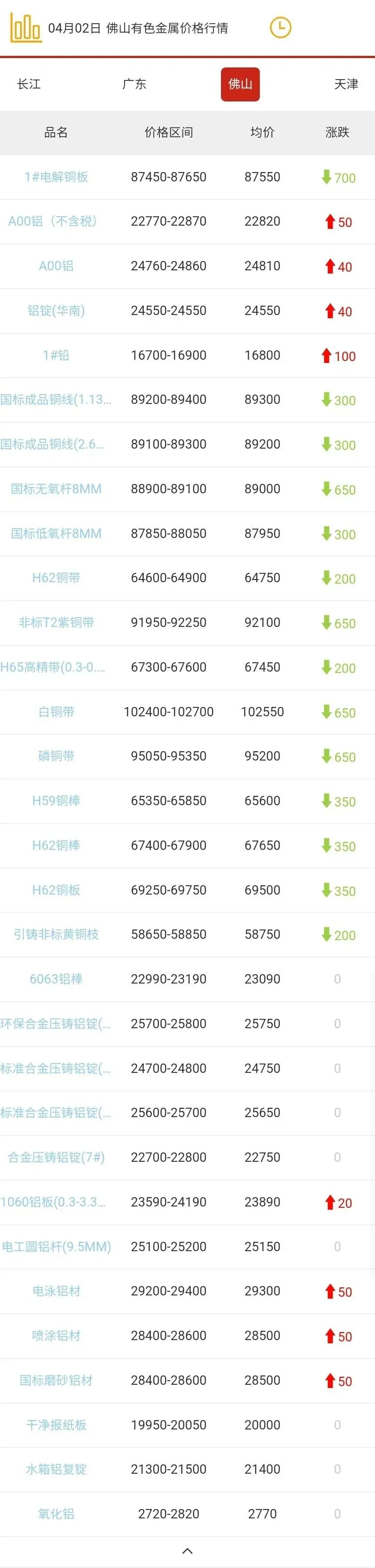 佛山有色金属价格行情