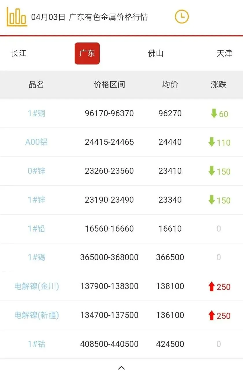 广东有色金属价格行情