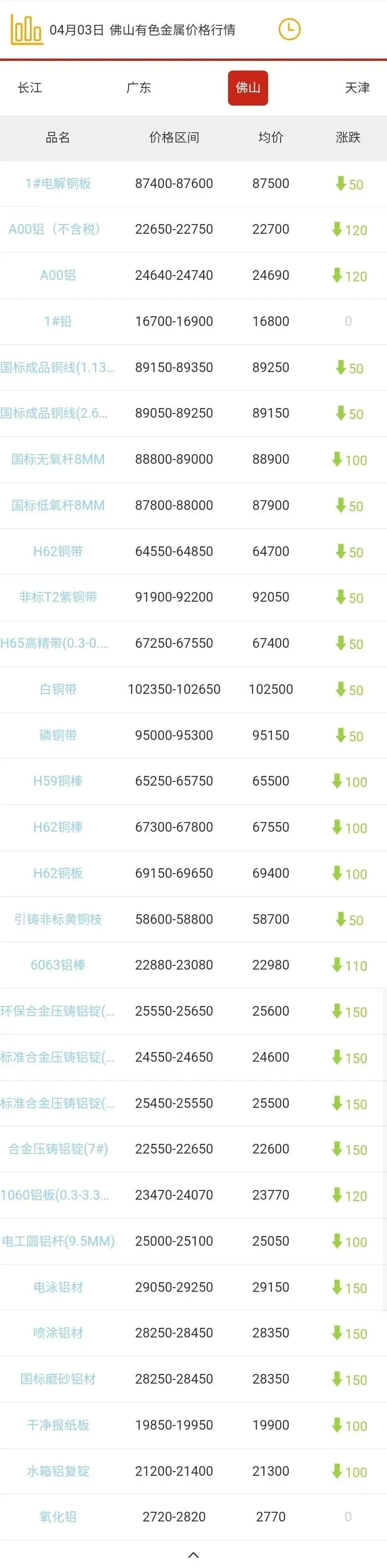 佛山有色金属价格行情