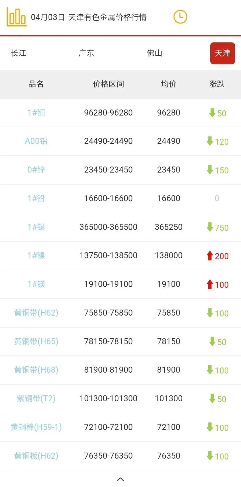 天津有色金属价格行情