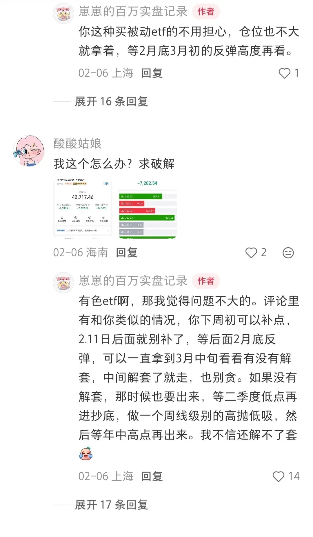 我当时花了一晚上复盘了有色走势,就写了这篇文章,还在评论区里反复提到在当时情况下有色被套后,今年怎么解套的节奏,见下图,可以看到相关观点是2月6日发的,现在看确实就像预言家一样。
