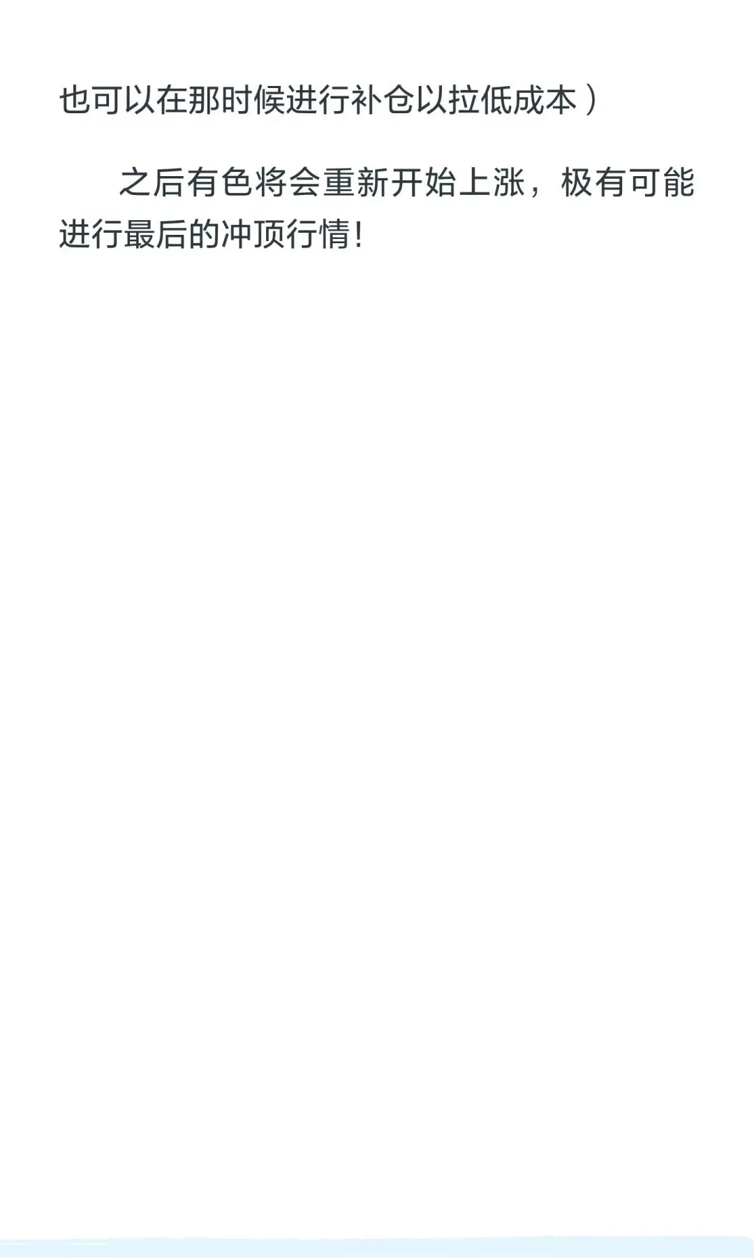 之后有色将会重新开始上涨,极有可能进行最后的冲顶行情!