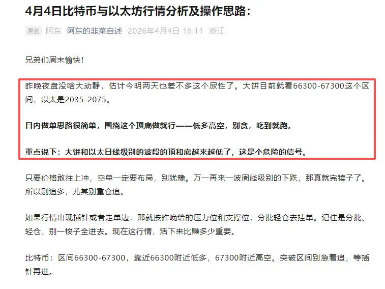 下午好兄弟们,昨天说的很清楚,大盘横盘区顶底高空低多,夜间大饼冲到673、以太冲到2075,都是提前给的点位,空单布局完美进场。这波下跌如期而至,跟上节奏的应该都吃到了。