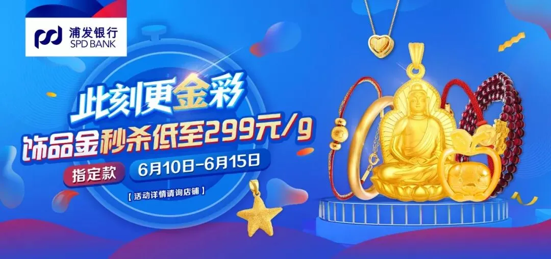 活动期间,指定款首饰金低至299元/g,“金”彩不断!