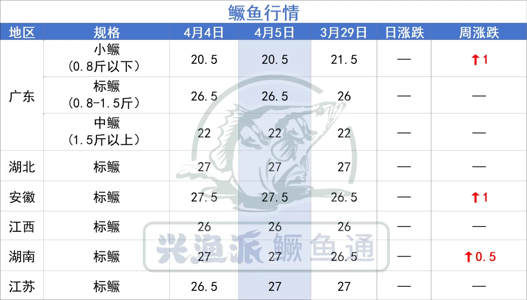 4月5日,今日鳜价波动不大